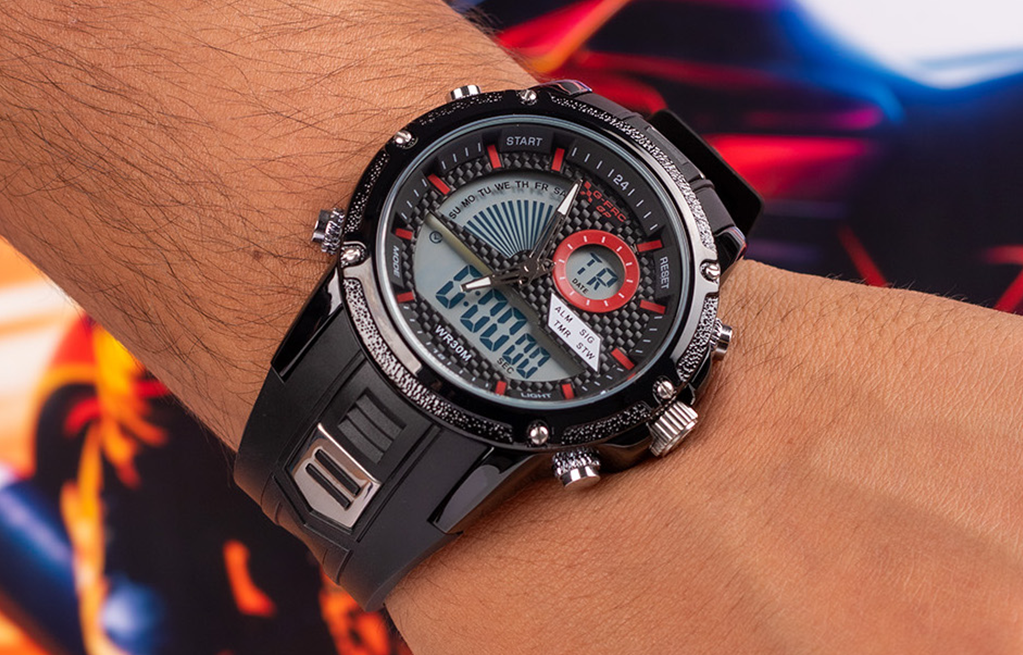 El reloj deportivo G-FRC GP combina diseño imponente y comodidad, ajustándose a tu estilo. Con hora análoga y digital, alarma, cronómetro, luz y calendario, es perfecto para mantenerte siempre puntual. Hecho de materiales duraderos como poliuretano y aleación de zinc, ofrece un pulso ajustable con hebilla metálica y resistencia al agua de 3ATM, ideal para amantes de las motos.